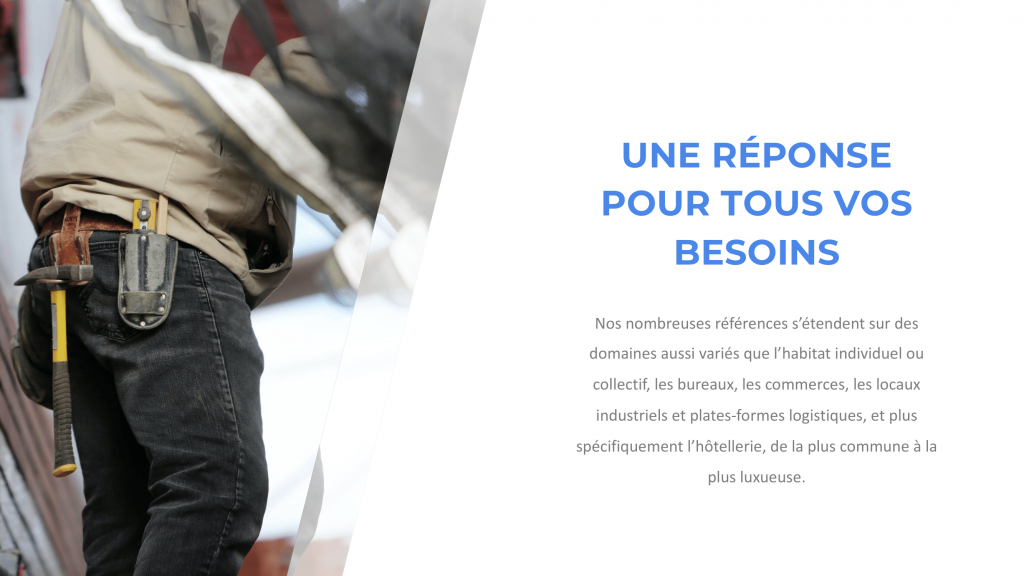 Notre entreprise développe son savoir-faire à tous les stades d’un projet : montage et conception du programme, optimisation technique et financière des projets, pilotage de l’opération clés en mains, exécution ou rénovation du gros-œuvre et de la structure, aménagement intérieur et finitions. Notre entreprise apporte ainsi à ses clients des solutions globales et innovantes respectant un budget et soucieuses d’une démarche de construction durable.